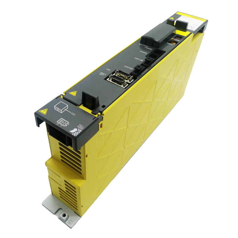 El A06B-6114-H103 se sitúa en el extremo estrecho de este rango. Su único módulo de transistores IPM de 20 A produce una salida nominal continua de 6.5 A, suficiente para motores alpha i en el rango de par continuo de 200 W a aproximadamente 500 W, dependiendo de la conversión de corriente a par del motor.